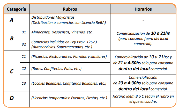 Se otorgará una Licencia por cada establecimiento comercial o sucursal. La categoría «D» será aplicable a las actividades temporales organizadas por entidades que habitualmente no se encuentran comprendidas en las categorías «A», «B» y «C», organizadas con o sin fines de lucro, y de carácter público o de acceso público y en las cuales se realice suministro, venta o expendio a cualquier título, depósito y/o exhibición de bebidas alcohólicas.