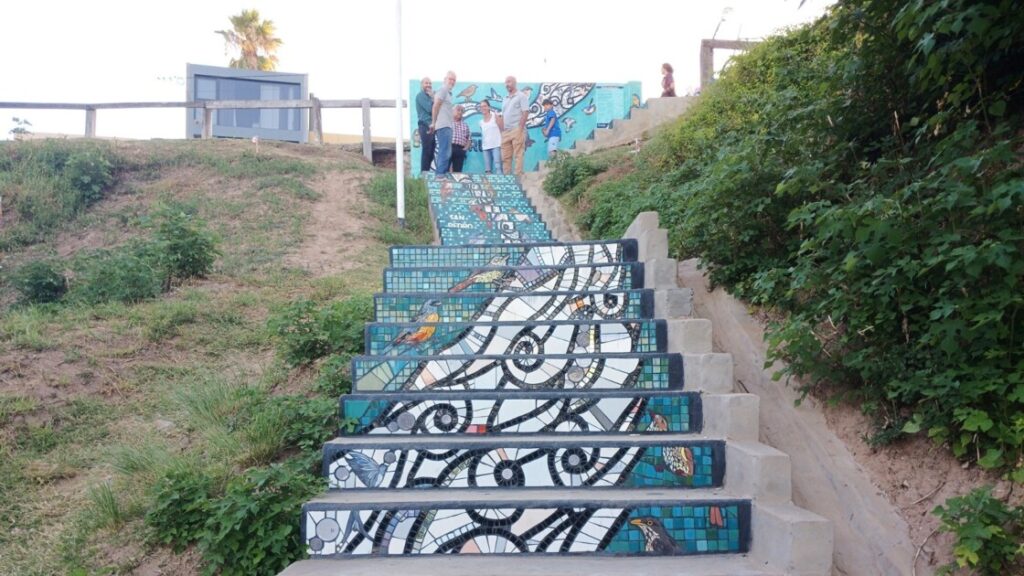 Este martes, el Intendente Cecilio Salazar visitó la Escalera de Pescadores en la que se viene llevando a cabo una intervención artística en mosaico a cargo de la arquitecta María Luz Méndez, con la participación de artistas locales, de diferentes provincias y otras nacionalidades.