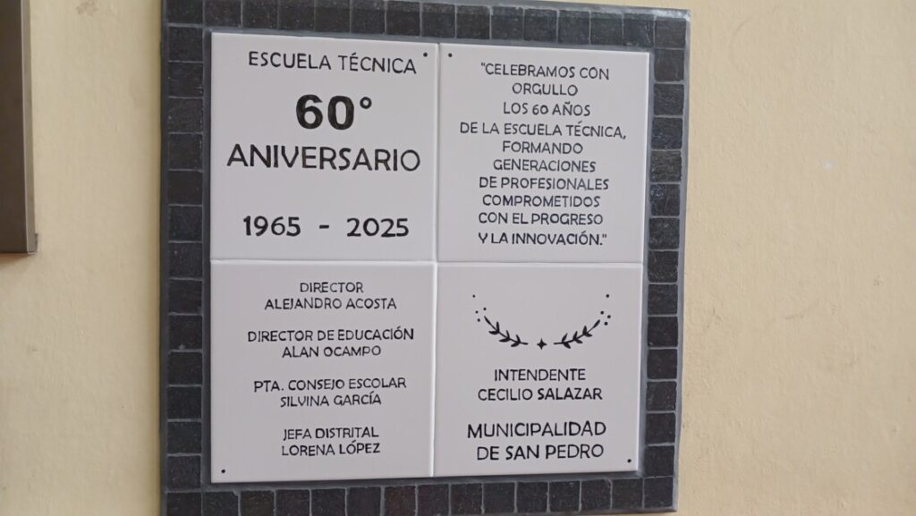 Acompañaron el evento el Intendente Municipal Cecilio Salazar, el Secretario de Turismo, Cultura, Deporte y Educación, Prof. Mariano Arnal, y el Director de Educación, Prof. Alan Ocampo, quienes compartieron junto a la comunidad educativa un clima de emoción y reconocimiento por estas seis décadas de compromiso con la formación técnica.