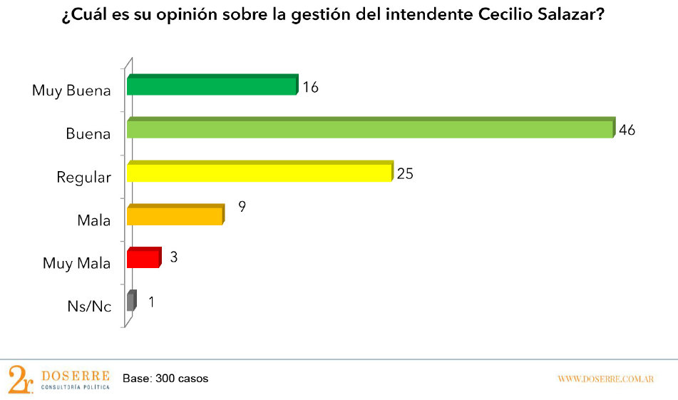 Se realizó recientemente en nuestra ciudad una encuesta telefónica de la consultora política Doserre de la Ciudad Autónoma de Buenos Aires. Esta medición se llevó a cabo entre el 13 y 16 de mayo de 2016, con el fin de ver cómo se encuentra posicionado el gobierno local, provincial y nacional. En total, 300 personas mayores de 16 años fueron consultadas telefónicamente.