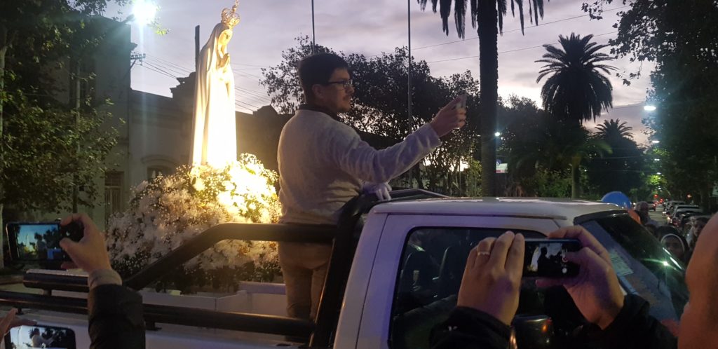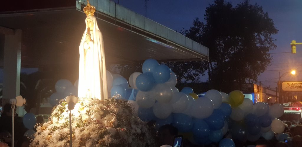 La imagen de Nuestra Señora del Rosario de Fátima arribo este miercoles por la tarde, escoltada por bomberos voluntarios al centro de nuestra ciudad.
