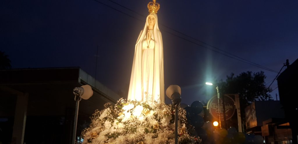 La Virgen de Fátima es una advocación con que se venera en el catolicismo a la Virgen Maria . Al igual que otras apariciones marianas, ésta tuvo su origen gracias a los testimonios ofrecidos por tres pastores, los cuales fueron Lucía dos Santos, Jacinta y Francisco Marto, dichos individuos, afirmaron haber presenciado en varias oportunidades, apariciones marianas en la Cova da Iria, Fátima, en Portugal, esto ocurrió entre el 13 de mayo y el 13 de octubre del año 1917, fue desde ese entonces que dicha advocación mariana extendió su popularidad a lo largo de Portugal , e incluso mucho más allá de sus límites locales llegando a todo el mundo.