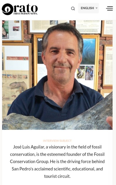 En un apartado, se brinda una reseña del entrevistado donde el reconocido medio de comunicación expresa: “José Luis Aguilar, un visionario en el campo de la conservación de fósiles, es el estimado fundador del Fossil Conservation Group (Grupo Conservacionista de Fósiles). Es la fuerza conductora detrás del aclamado circuito científico, educativo y turístico de San Pedro”.