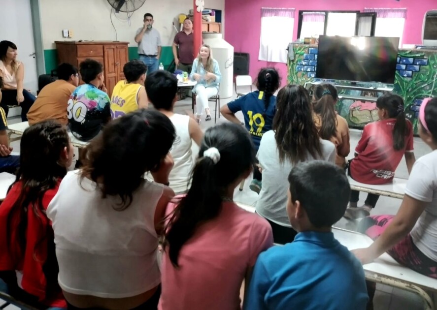 Niños y niñas de entre 10 y 12 años recibieron al equipo interdisciplinario que viene proponiendo charlas sobre seguridad vial y prevención en diferentes establecimientos escolares, en este caso, en el CEC 803 de Gobernador Castro.