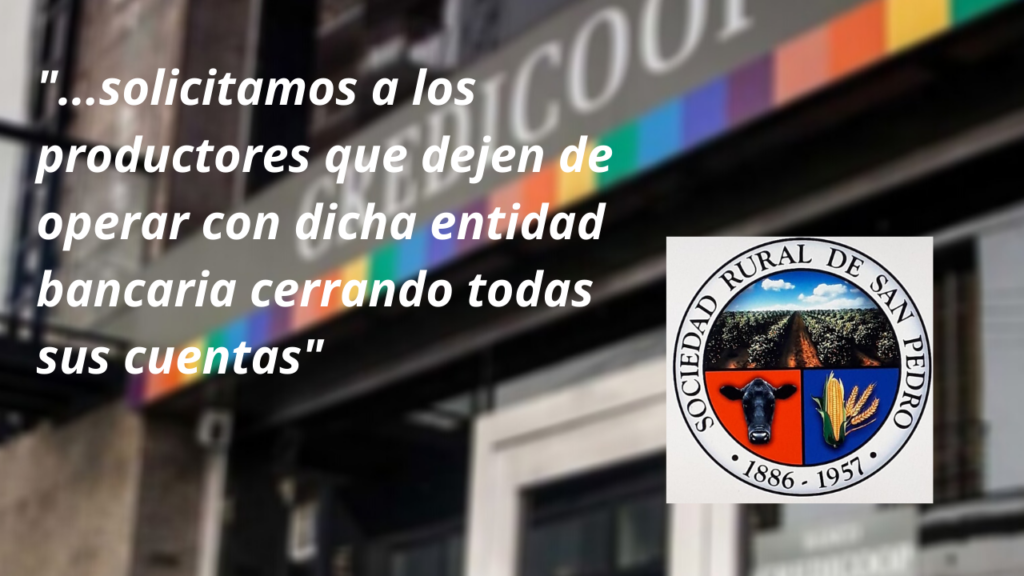 Por tal motivo solicitan a los productores que dejen de operar con dicha entidad bancaria cerrando todas sus cuentas en el Banco Credicoop Ltdo».