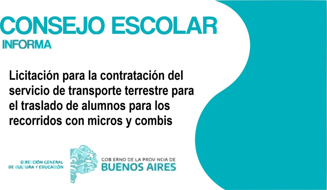 Consejo Escolar San Pedro llama a licitación para la contratación del servicio de transporte terrestre para el traslado de alumnos para los recorridos con micros y combis. Consulta y retiro de pliegos en Ayacucho e Ituzaingó 1º Piso, de 8 a 12 hs.