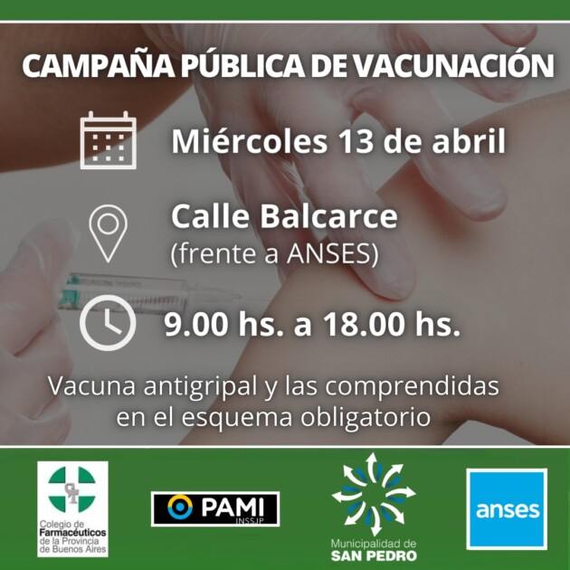 La Municipalidad de San Pedro coordinará desde la Secretaría de Salud y junto al Colegio de Farmacéuticos, PAMI y ANSES una campaña intensiva para la aplicación de la vacuna antigripal y las comprendidas en el esquema obligatorio.
