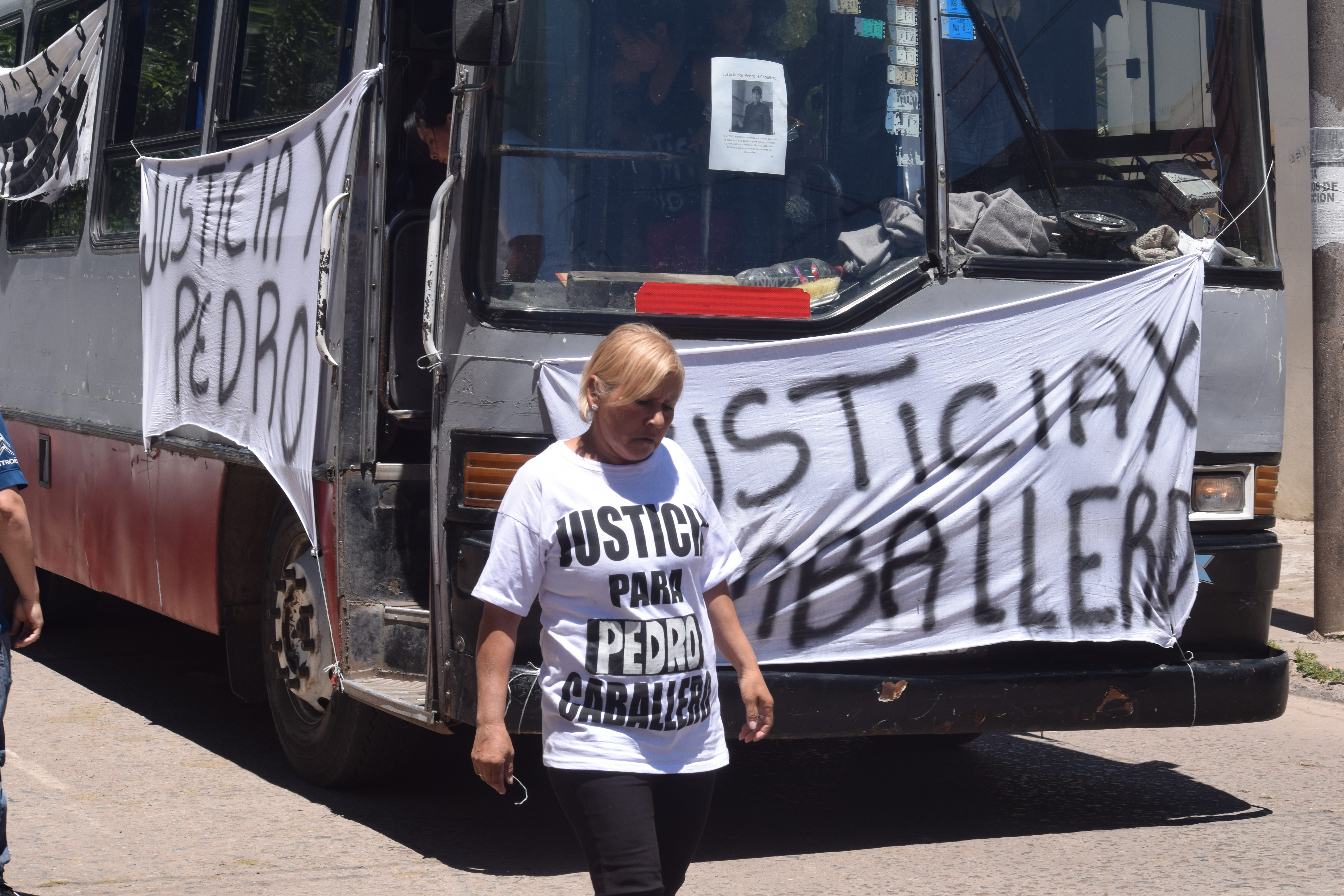 Hasta allí llegaron los familiares de Pedro Caballero: entre los presentes se encontraba su madre, María del Carmen, además de su hermano, Víctor Caballero, y también su pequeña hija de 3 años, Mía Caballero, junto a su madre. El recorrido comenzó en la fiscalía, continuó por calle Bartolomé Mitre hasta llegar a la comisaría local, donde se encuentra alojado el único detenido, Nazareno Monzón. En este lugar, al canto de «Asesino, asesino» y con el sonido de bombos, redoblantes y platillos trataron de hacerse escuchar por el detenido.