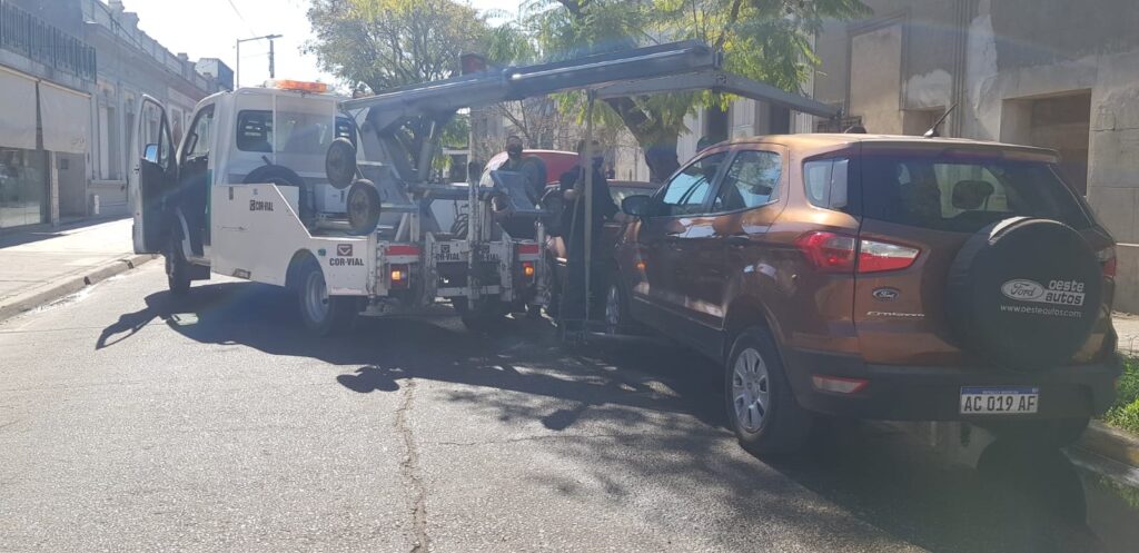 Este lunes se pudo ver en el cenmtro de la ciudad el trabajo de la grua con varios vehiculos que se encontraban mal estacionados en linea amarilla.