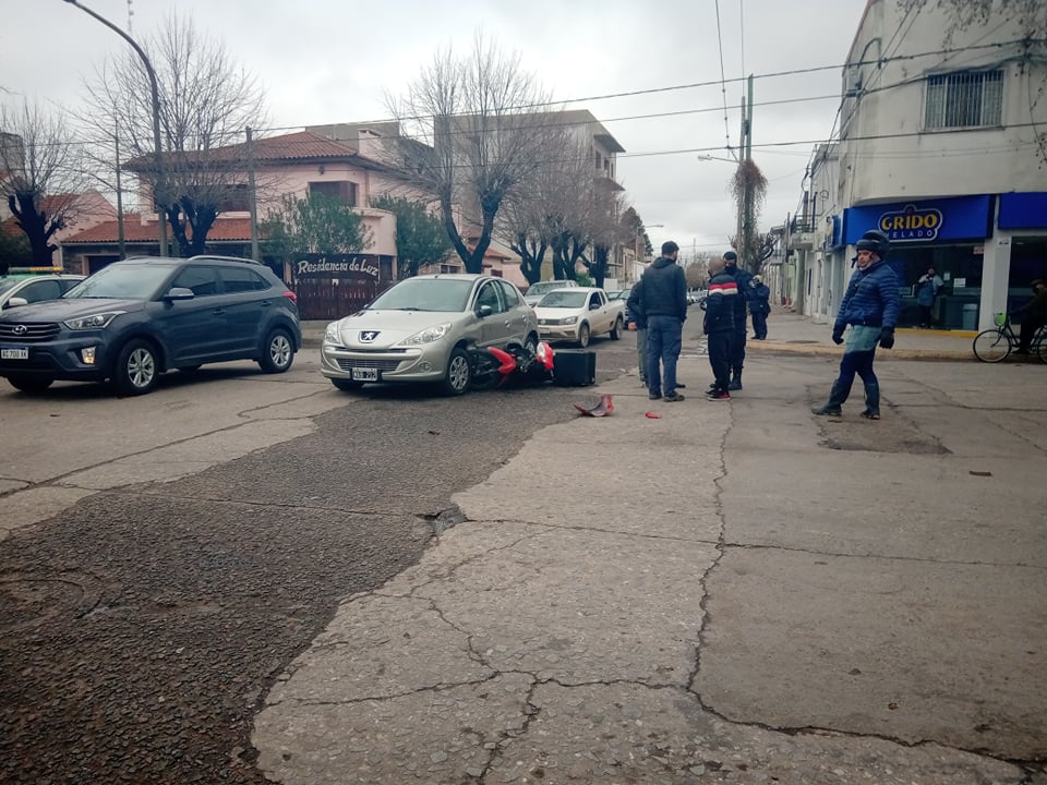 Este jueves alrededor de las 11:30 hs se produjo un accidente de transito donde estuvieron involucrados un automóvil Peugeot 207 gris conducido por un masculino fue impactado por una motocicleta tipo 110 cc conducido por un mensajero.