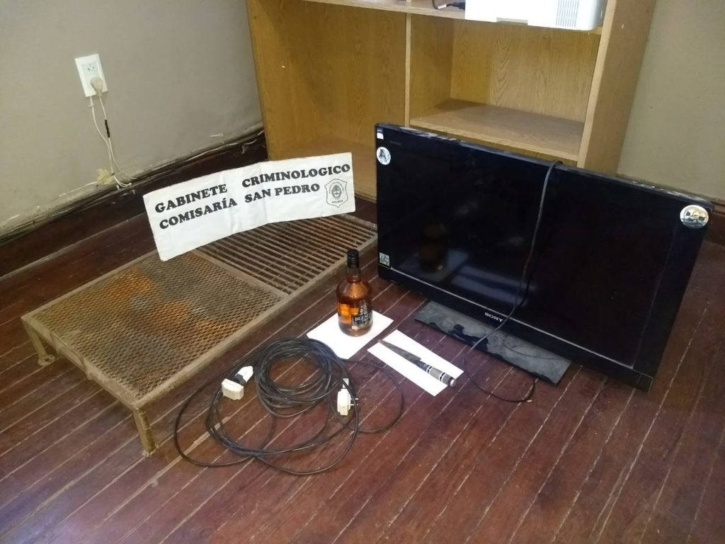 Destaquemos que el domicilio allanado es vecino de la familia asaltada, arrojando resultado positivo, lográndose el secuestro de un tv de 32 pulgadas marca Sony, una parrilla de hierro, un cuchillo, un alargue, una botella de whisky.