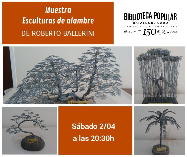 En el marco de las actividades por los 150 años de la Biblioteca Popular Rafael Obligado, este sábado se presentará la muestra «Esculturas en alambre», de Roberto Ballerini.