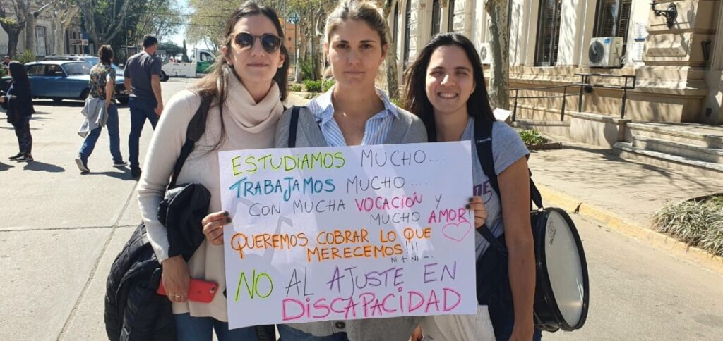 Por medio de una masiva convocatoria los prestadores de servicios a personas con discapacidad volvieron a concentrarse en el centro de la ciudad para manifestarse en contra de los recortes que la Superintendencia de Servicios de Salud, por medio del Ministerio de Economía de la Nación, está efectuando y ha provocado el retraso en los pagos a los profesionales.