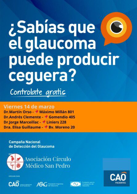 El Círculo Médico de San Pedro se suma a la Campaña Nacional de Detección del Glaucoma este viernes 14 de marzo, una iniciativa promovida por el Consejo Argentino de Oftalmología.