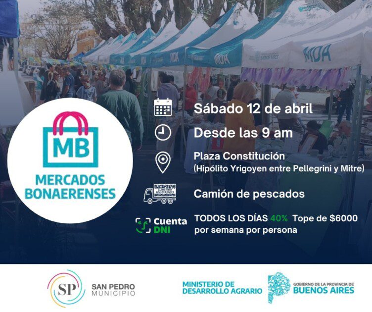 Este sábado 12 de abril se realizará una nueva edición del programa que lleva adelante el Ministerio de Desarrollo Agrario del Gobierno de la Provincia de Buenos Aires y que es coordinado por la Secretaría de Producción, Industria y Comercio de la Municipalidad de San Pedro.
