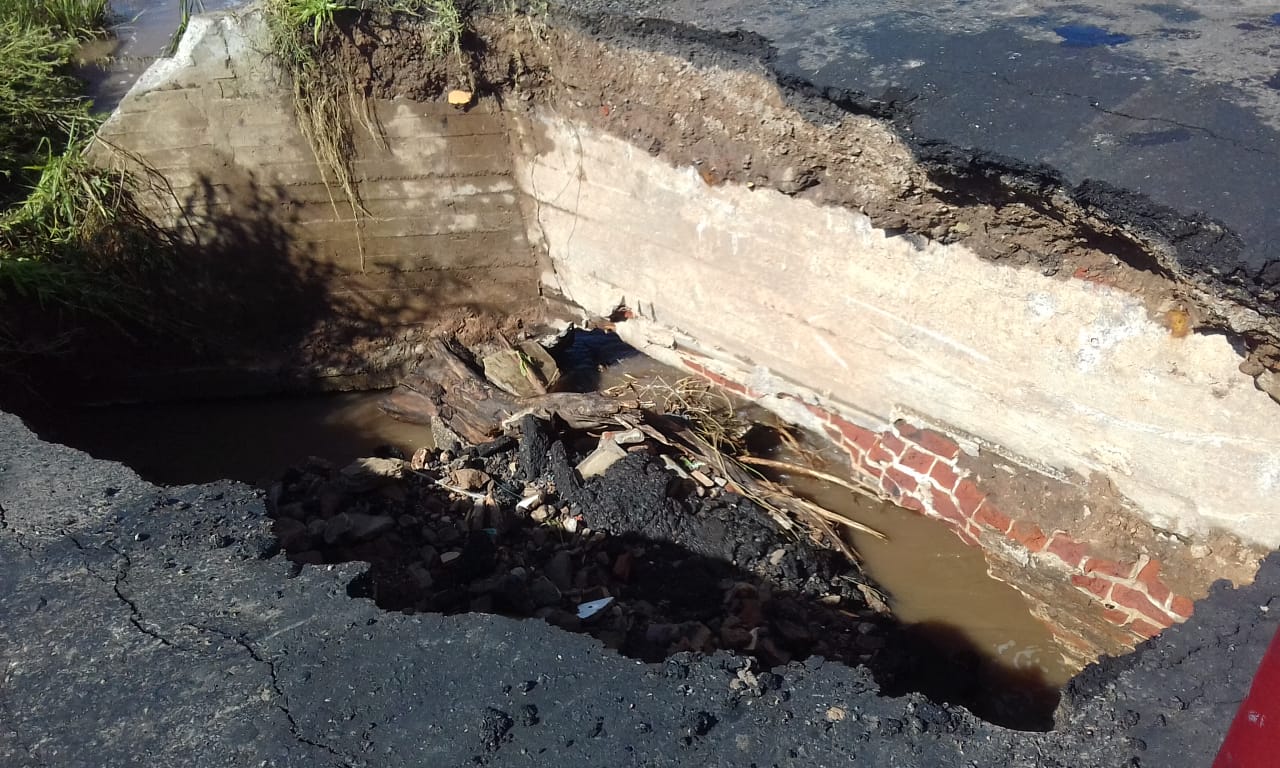 «Tras la enorme caída de agua se desmorono la mitad del puente y cayo, vamos a estar trabajando todo el día, esperamos la llegada de Vialidad de la Provincia de Bs As» contó Alvarez.