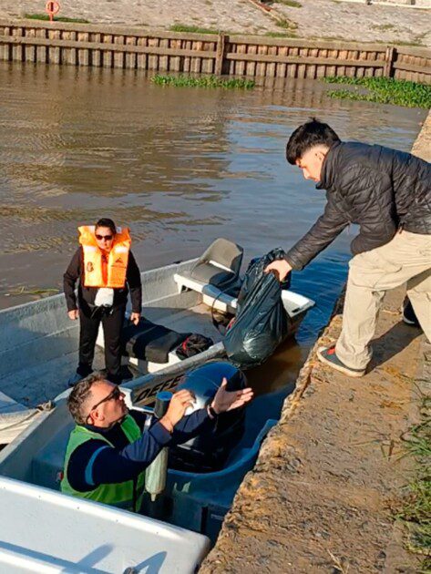 En un trabajo conjunto entre la Secretaría de Desarrollo de la Comunidad, la Dirección de Defensa Civil —dependiente de la Secretaría de Gobierno— y el Consorcio de Gestión del Puerto, que facilitó una embarcación, se llevó a cabo un operativo de asistencia en la zona de islas, iniciado ayer y aún en desarrollo.