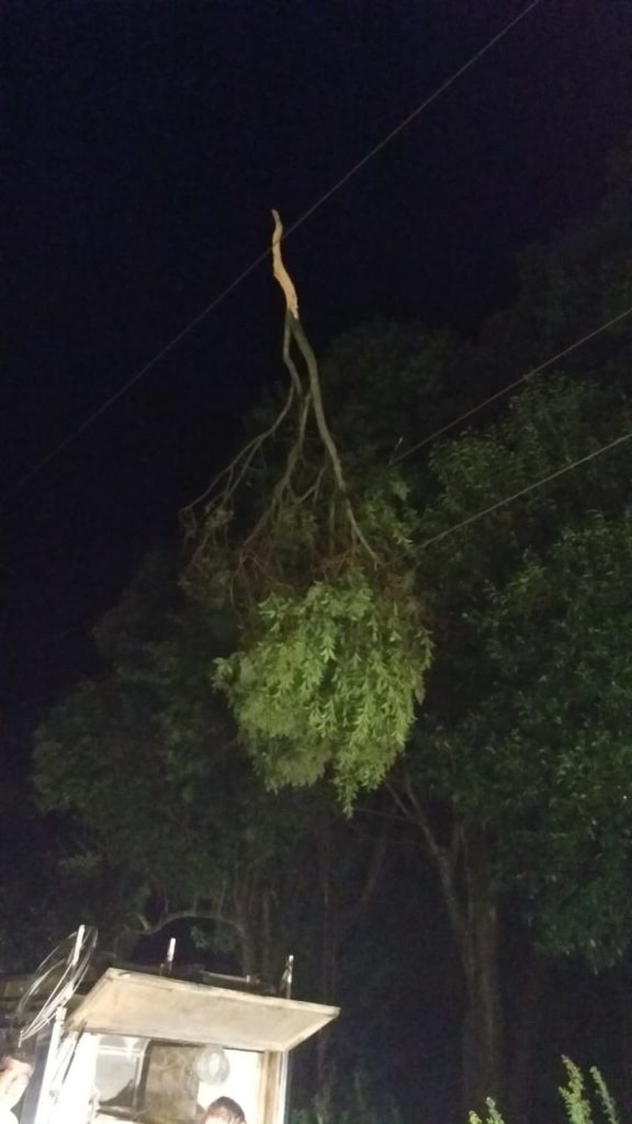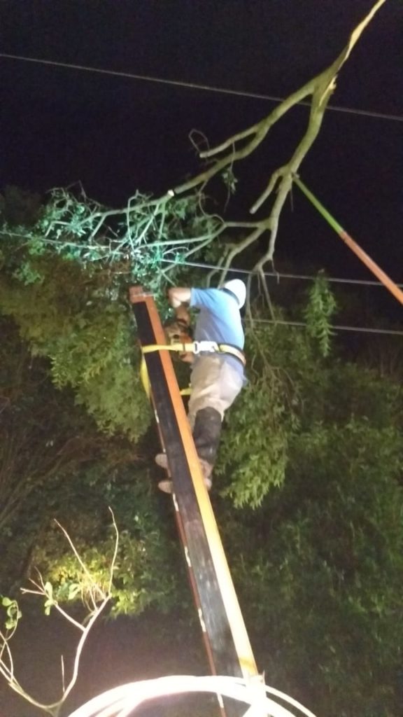 Producto de las lluvias y ráfagas de viento, han caído ramas sobre las líneas de tensión y también se han advertido postes quebrados en la zona rural.