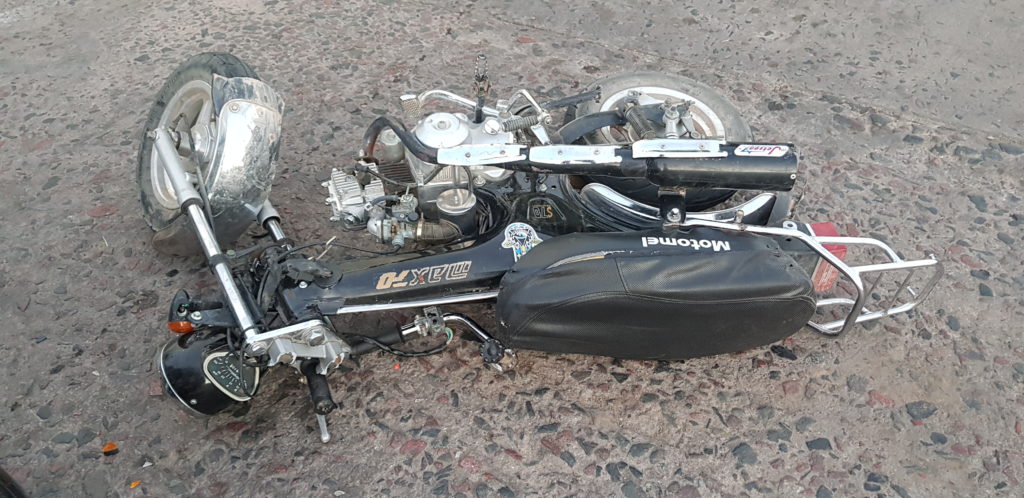 En esta ocasión los involucrados son un automóvil Renault Clio azul conducido por un masculino mayor de edad y una motocicleta tipo Dax color bordo en la que circulaba un joven mayor de edad.