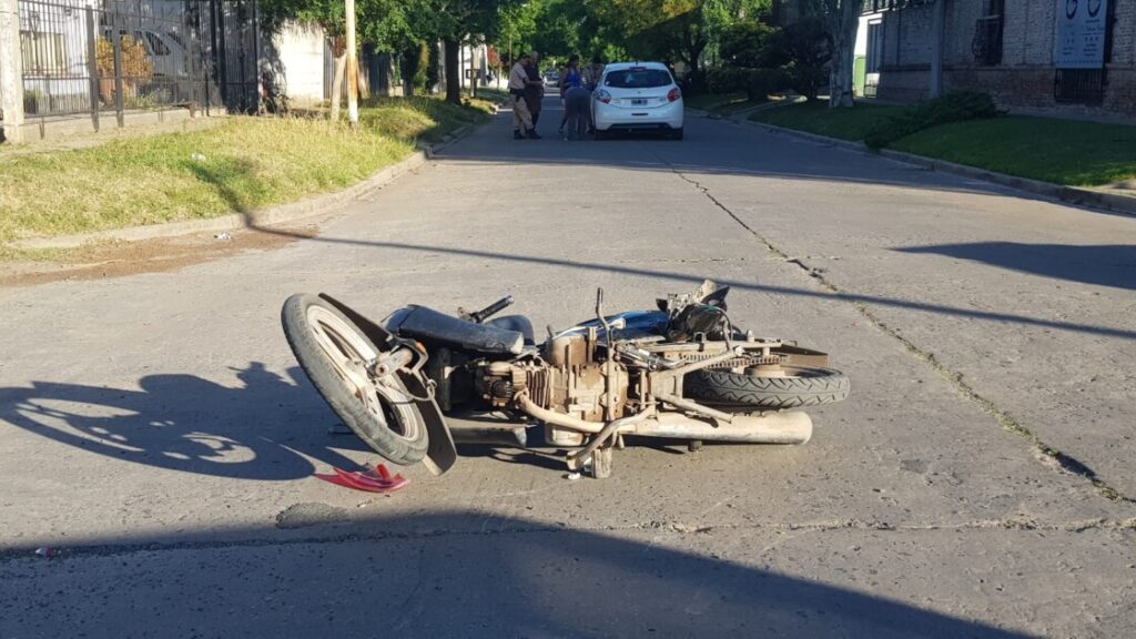 El cuarto accidente del día ocurrió en calle Quiroga y Ansaloni donde una mujer que circulaba en automóvil Peugeot Color blanco colisiono con una motocicleta 110 cc conducida por un joven menor de edad.