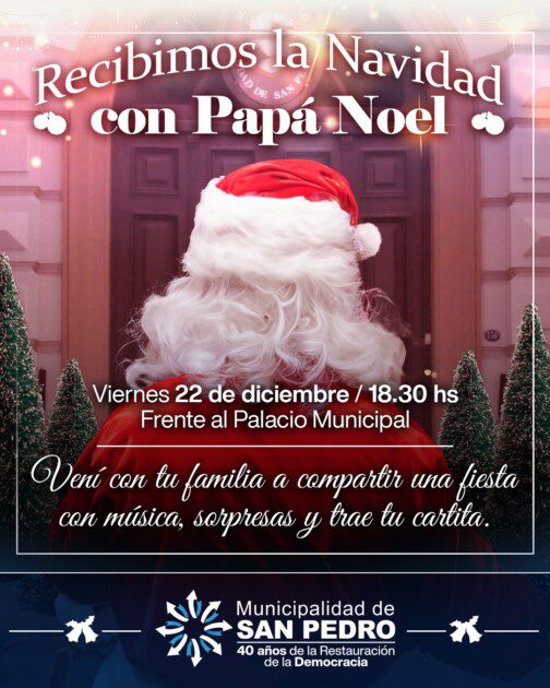 La Municipalidad de San Pedro invita a participar a toda la comunidad de la tradicional fiesta que anticipa la Nochebuena y la Navidad con un encuentro con Papa Noel, frente al palacio municipal.
