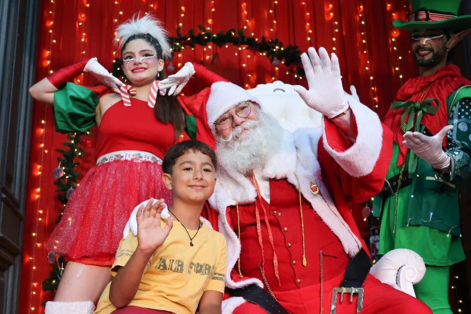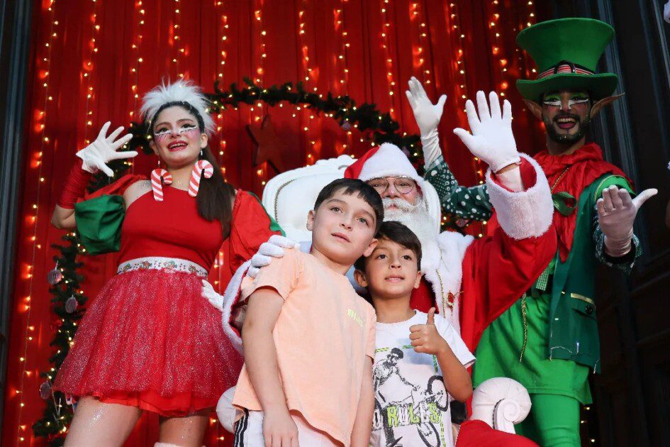 Tras la actuación de grupos que interpretaron canciones infantiles, Papá Noel, ubicado en un sillón especial frente a la entrada principal, recibió a centenares de chicos y chicas que llegaron con sus familias y se tomaron fotografías.