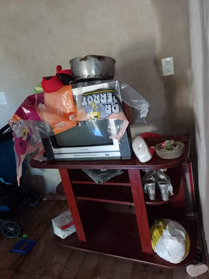 Este sábado azotó a la región una de las peores tormentas en mucho tiempo que causó una gran cantidad de destrozos y la familia Oihler sufrió la voladura total de su techo en su vivienda ubicada en calle Cabrera sin número, y la gran cantidad de agua caída le arruinó la mayoría de sus pertenencias.