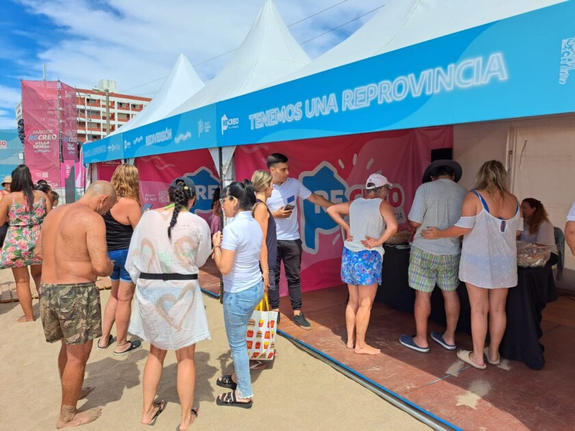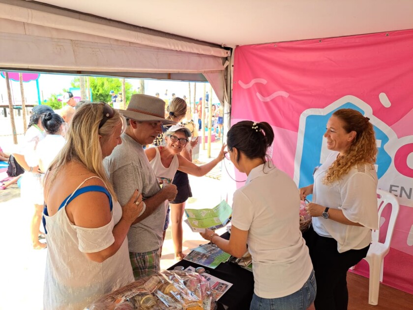 La Secretaria de Turismo, Marcela Cuñer, junto a integrantes del equipo estuvieron en el Parador de ReCreo de las playas de Gesell en el que como en el 2022, se ofrecen actividades recreativas, artísticas y culturales.