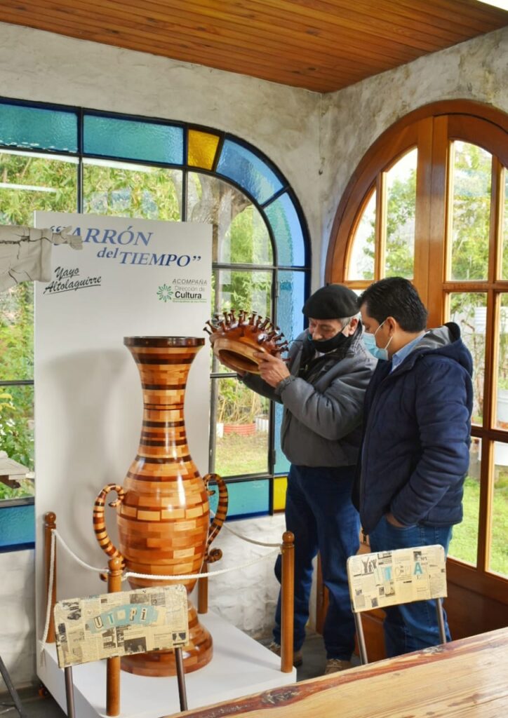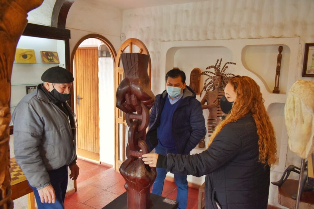 El artista Edgardo “Yayo” Altolaguirre recibió en su centro de exposición “Utopía Rincón del Artesano”, ubicado en Bernardo de Irigoyen 330, al Secretario de Coordinación Ramón Salazar y a la Secretaria de Turismo y Cultura Marcela Cuñer con la finalidad de realizar la donación de un jarrón del tiempo creado por el propio artista para que sea expuesto en el Centro Cultural Abelardo Castillo.