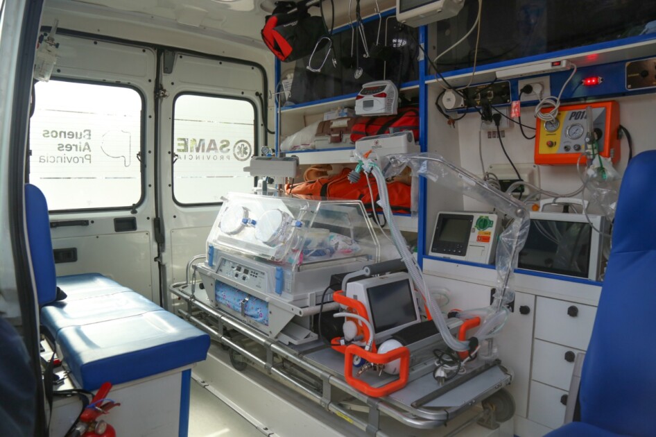 El equipamiento instalado en la ambulancia consiste en, una incubadora de transporte MEDIX TR200 completa con carro, tubo de oxígeno con regulador, mástil porta suero y batería, un respirador de transporte Leistung PR5 TT completo con pedestal rodante y porta cilindro de oxígeno, una incubadora marca MEDIX NATAL CARE, una Cervocuna marca MEDIX Modelo SM-401, un monitor multiparametrico color y una bomba de infusión.