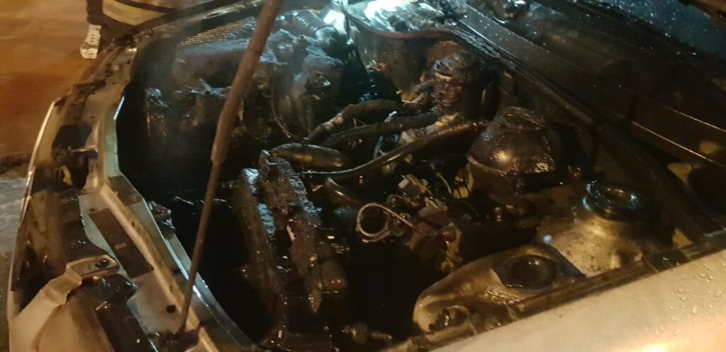 En la noche de este domingo ocurrió un siniestro donde un automóvil por un desperfecto en el motor comenzó a prenderse fuego.