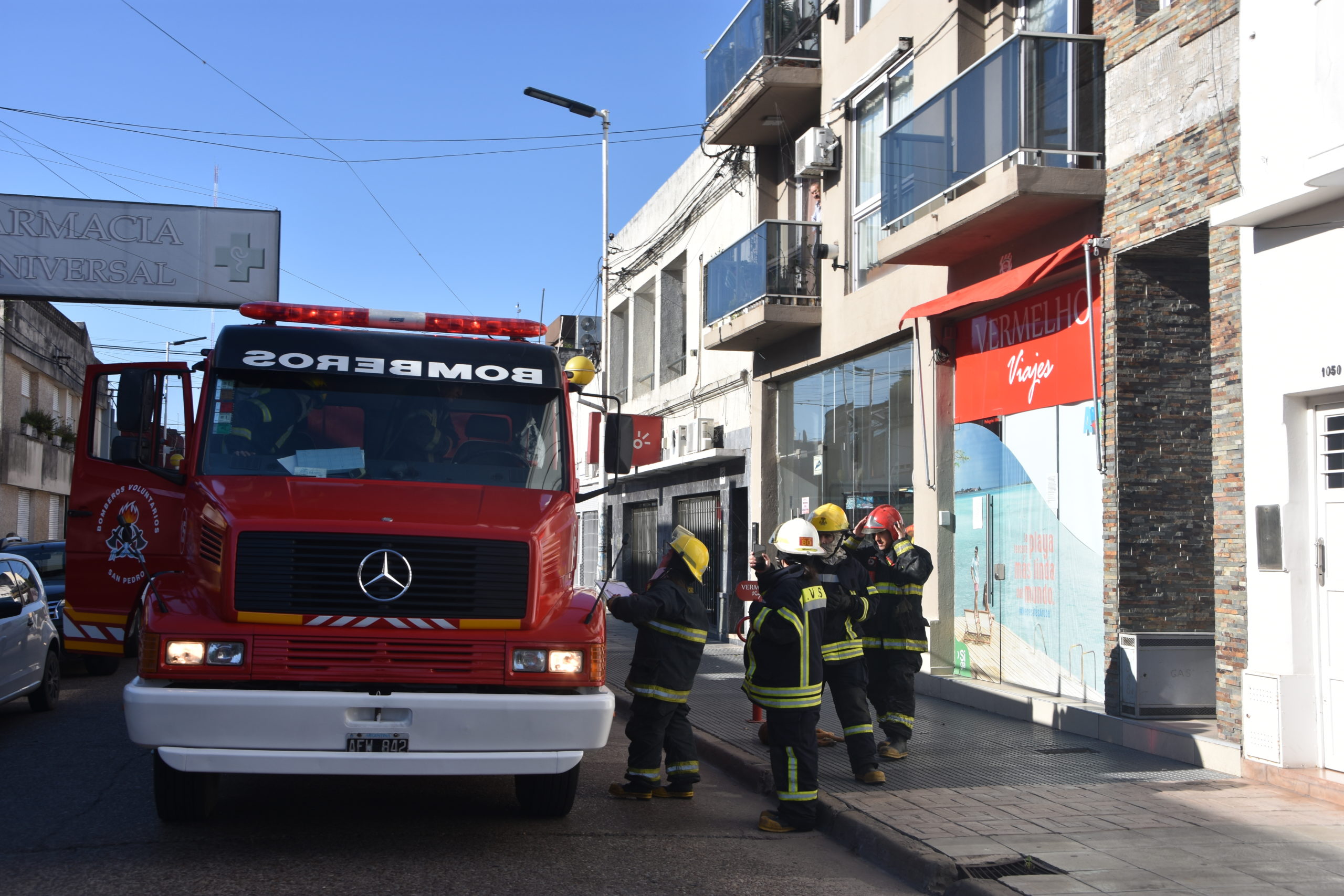 Una dotación de Bomberos Voluntarios se hacen presente en un departamento donde ocurrió un principio de incendio.