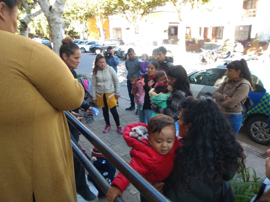 Otra de las mamas que se acerco junto a su chiquita expresaba «vinimos pacíficamente para que el intendente nos atienda, queremos una solución, no queremos estar en la calle, nosotros nos estamos moviendo, estamos averiguando y el terreno tiene dueño, es de Buenos Aires y pudimos hablar con el»