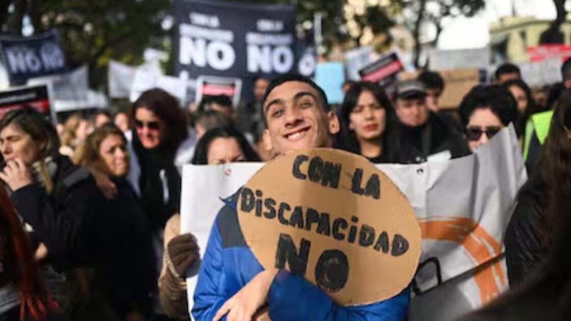 Los manifestantes reclaman la implementación de una Ley de Emergencia en Discapacidad y un aumento urgente de aranceles, bajo el lema #NOALAJUSTEENDISCAPACIDAD.