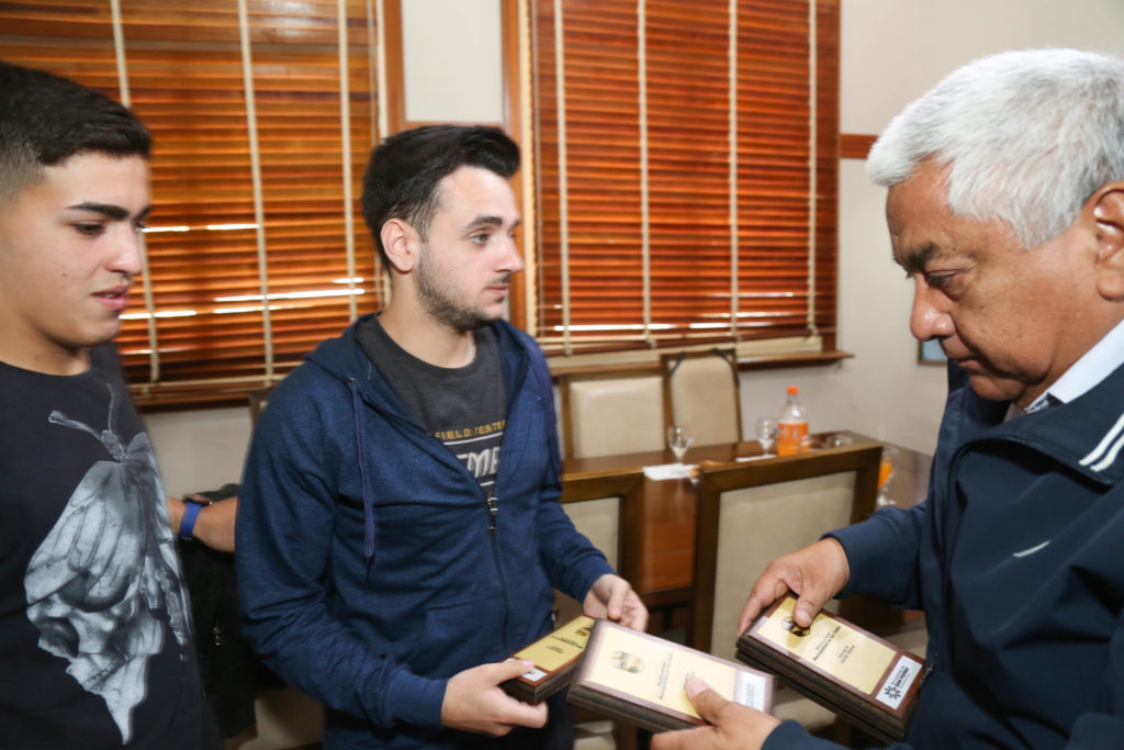 Los alumnos de 7 año de la Escuela Industrial, recibieron un obsequio de manos del Intendente y asistieron acompañados por Alejandro Acosta, Director de la EET N°1 y el Profesor Fernando Giménez.