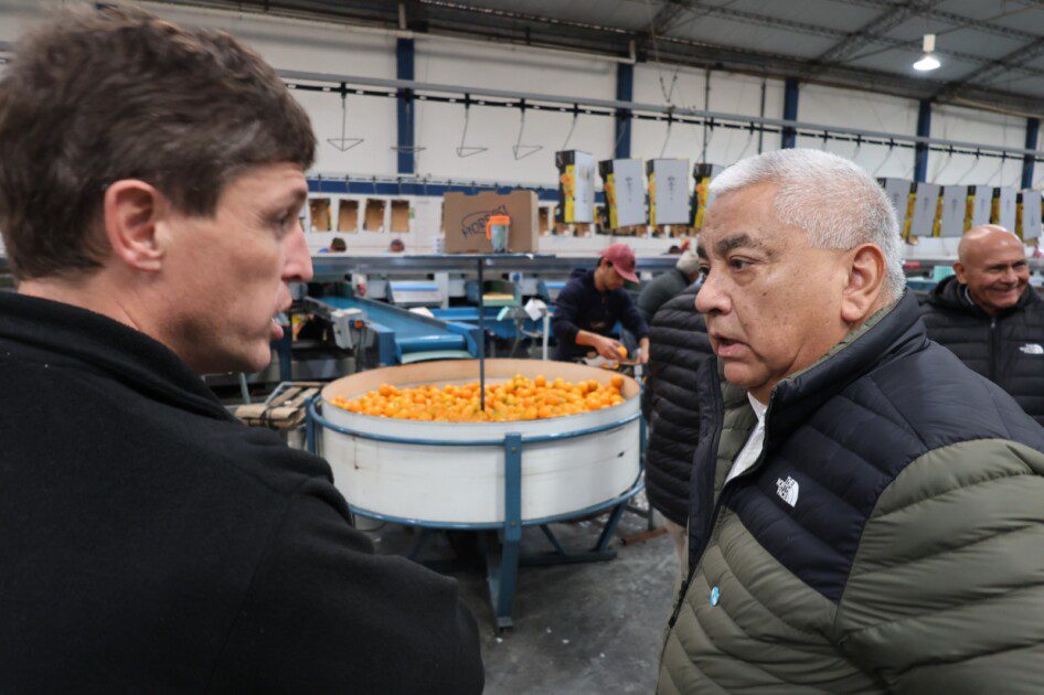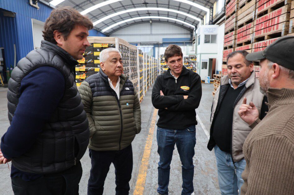 El Intendente Cecilio Salazar visitó este martes la planta de empaque de la familia Morresi, acompañado por el Jefe de Gabinete Alfredo Carrasco, el Secretario de Producción, Industria y Comercio Ariel Álvarez, el coordinador del área Hugo Ramírez, el Ingeniero Agrónomo Emilio Ponzio y el asesor en seguridad Carlos Farré. Fueron recibidos por Matías y Federico Morresi, quienes brindaron detalles sobre el trabajo de esta temporada y mostraron las nuevas instalaciones con tecnología de última generación.
