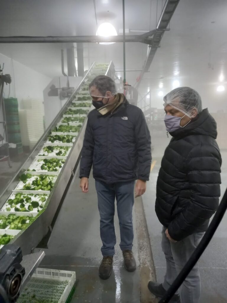 Durante la visita, se conocieron los diferentes productos que comercializan además del arándano, ya que la empresa elabora productos congelados como acelga y brócoli que son procesados en un túnel de frío de última generación y cuenta con dos plantas para el proceso de los productos en su presentación fresco y congelado.
