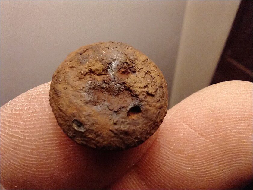 Un par de monedas muy antiguas, llamadas comúnmente «macuquinas», son parte de los elementos hallados con la colaboración de Ignacio Desanzo, quien con su equipo de detección colaboró con el grupo del museo para recuperar elementos metálicos.