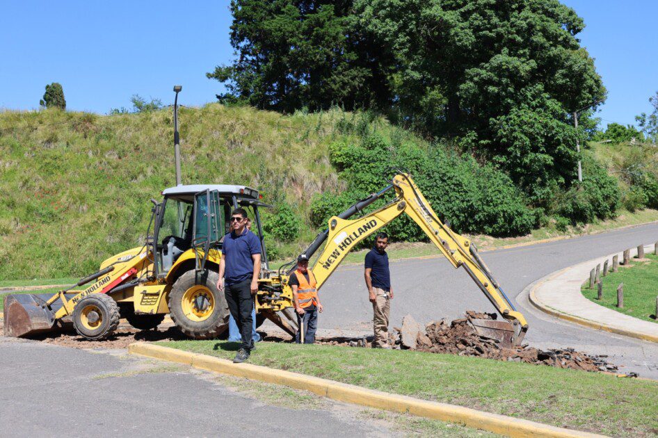 La Municipalidad de San Pedro, a través de la Secretaría de Servicios Públicos, lleva adelante trabajos de reparación y mejora vial en la intersección de Rómulo Naón, Avenida España y Coronel Thorne, un punto clave de conexión con la costanera baja.