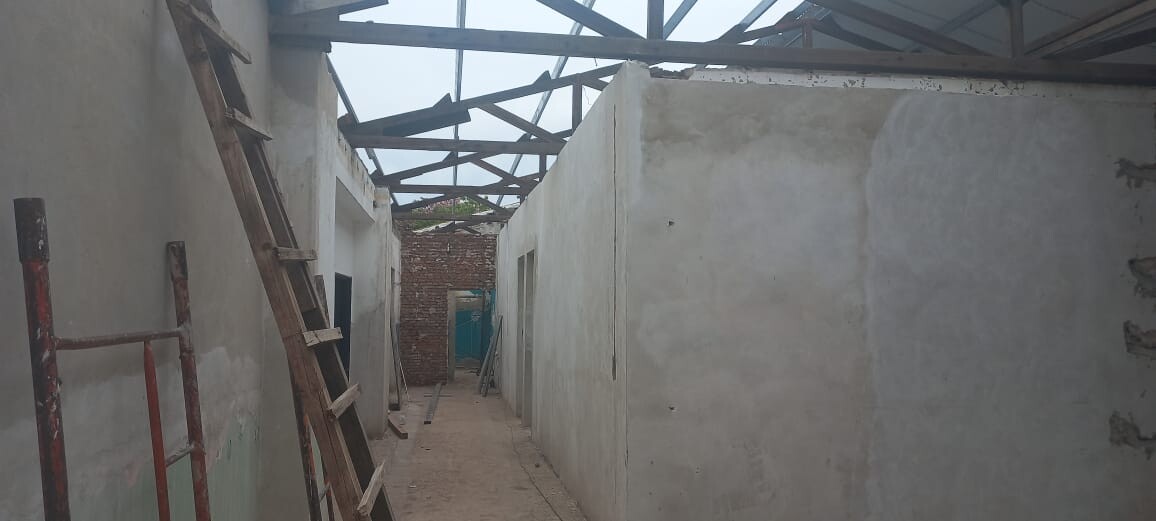 Durante estos días se trabaja en el retiro del piso del patio para la colocación de una nueva superficie y la instalación del nuevo techo.