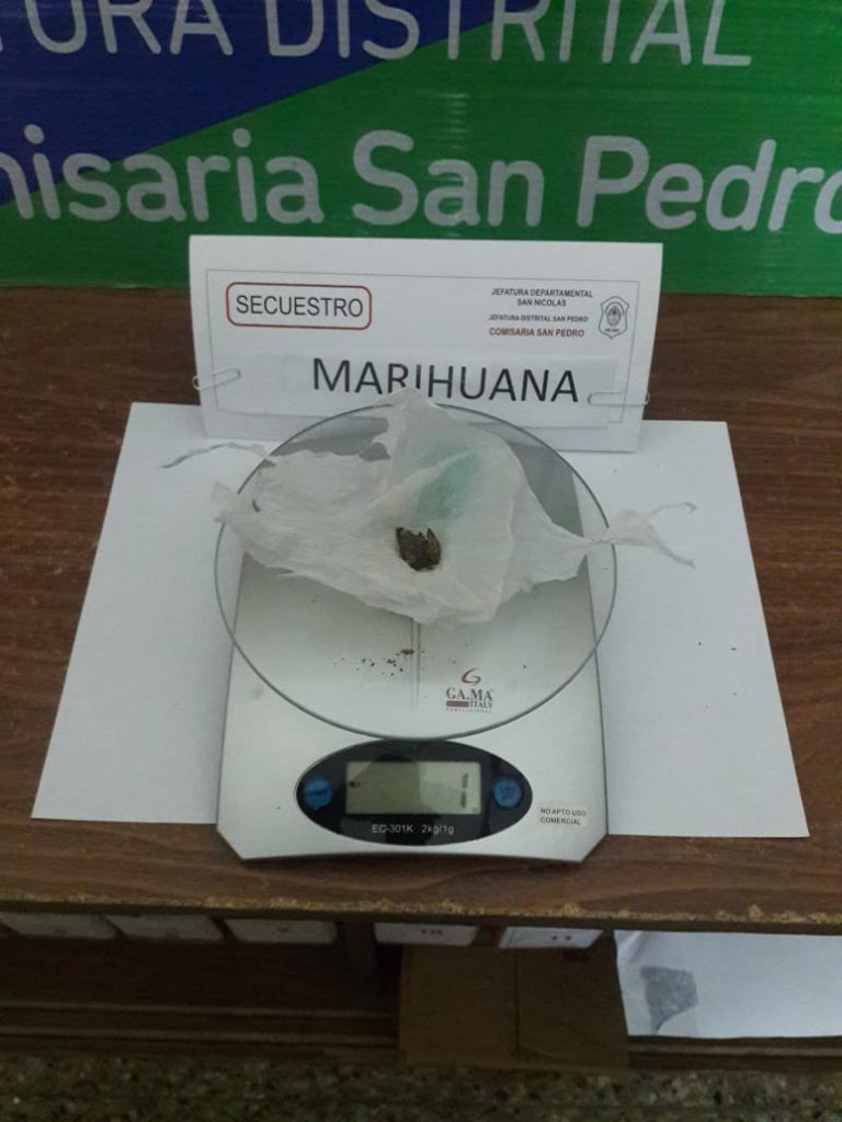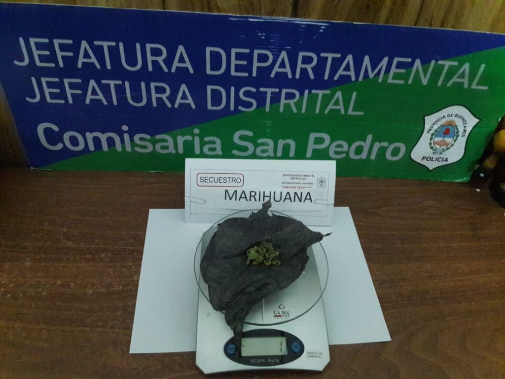 En inteseccion de las calles Cruz Roja y Alvear se aprehende a masculino d 21, secuestrandole baguyo de marihuana.