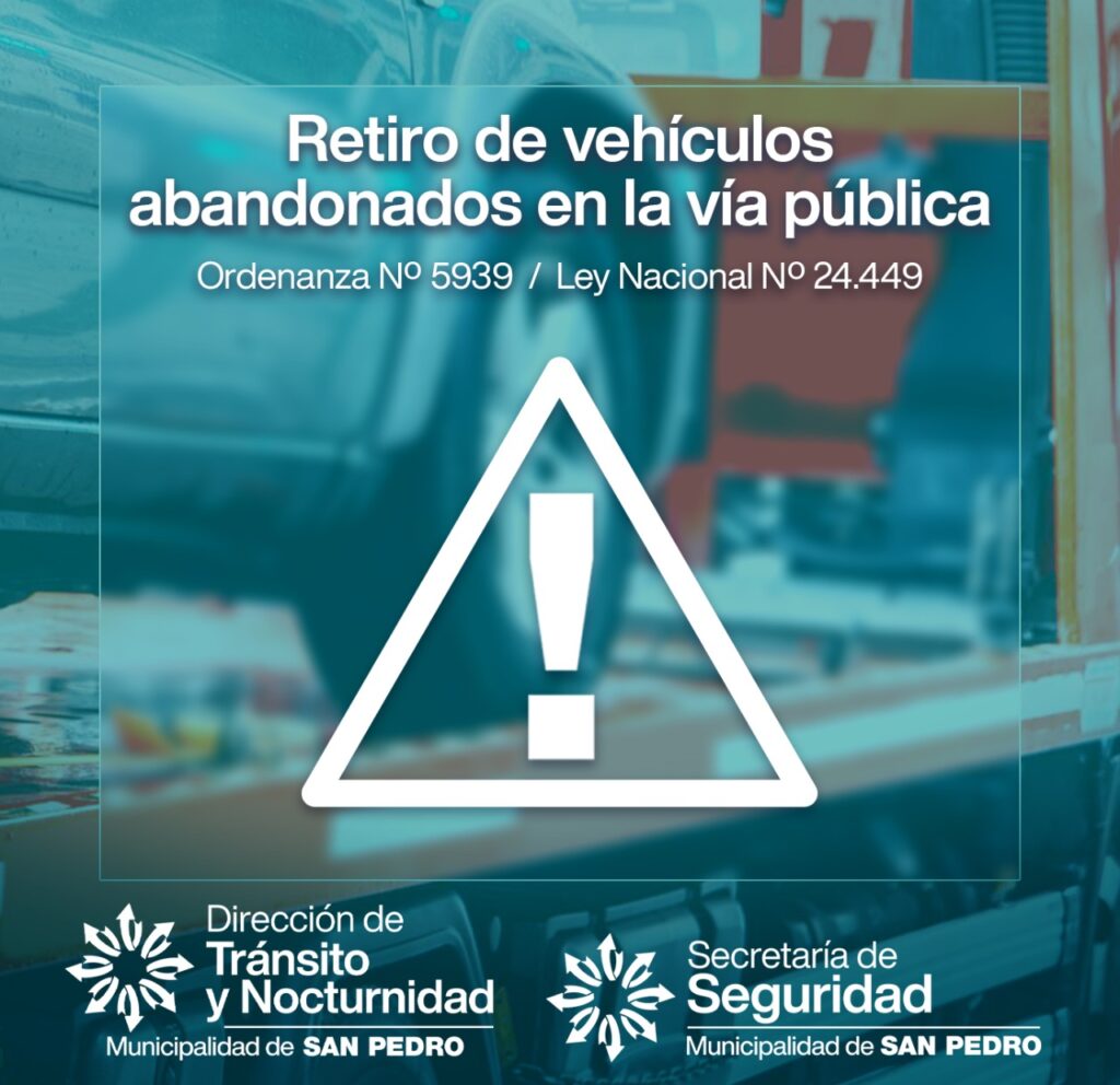 La Municipalidad de San Pedro, a través de la Dirección de Transito comenzó con el levantamiento de vehículos en estado de abandono en la vía pública que ponen en peligro la salud, la seguridad y el medio ambiente.