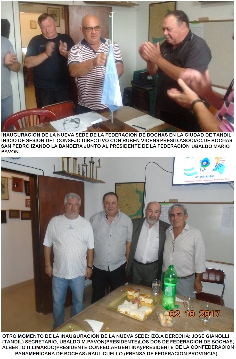 El 10 y 11 de febrero se realizó la gran inauguración de la nueva sede en Tandil de la Federación de Bochas de la Provincia de Buenos Aires, y la primera reunión de trabajo del consejo directivo en la casa nueva, con la presencia de presidentes de asociaciones de la provincia que tuvieron la deferencia de participar de los festejos, contando también con la presencia del Sr. presidente de la Confederación Argentina de Bochas y presidente de la Confederación Panamericana de Bochas, Alberto Limardo y se destaca la honrosa distinción por parte de presidencia otorgando a Rubén Vicens, presidente de la ABSP, siendo el primer presidente de una afiliada en izar la bandera argentina en una reunión de consejo directivo en la nueva sede.
