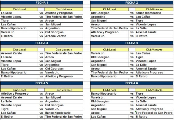 Fixture de las primeras seis fechas: