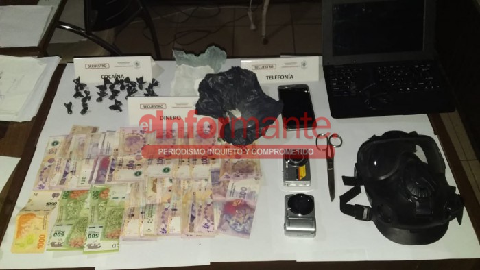 El segundo allanamiento se realizó en calle Rucci al 214. Se secuestró una motocicleta marca Honda con pedido de secuestro activo a solicitud UFI 1 por el delito de Hurto desde el 31 de mayo del 2019; 16 envoltorios de cocaína (10grs); 2 trozos compactos de cocaína (26grs); $8.600 y se procedió a la aprehensión de Cristián David Acosta de 21 años y soldado voluntario del Cuartel San Nicolás y Agustina Micaela González de 19 años.