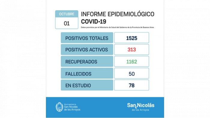 En este momento contamos con 313 casos activos y son 1525 positivos desde el inicio de la pandemia, de los cuales 1162 tienen el alta médica y 50 fallecieron.