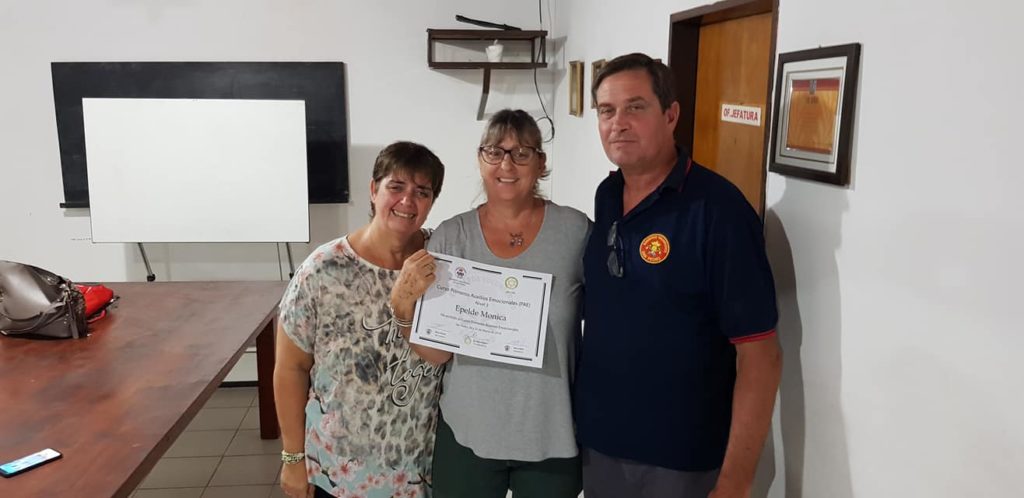 El equipo ya está operativo para asistir en emergencias y desastres, abiertos a la comunidad en forma voluntaria. Gracias a nuestra guía y coordinadora general Lic. Alicia Galfaso quien nos ha marcado el camino y capacitado como profesionales.
