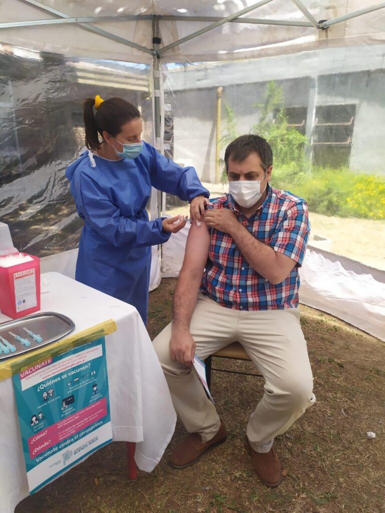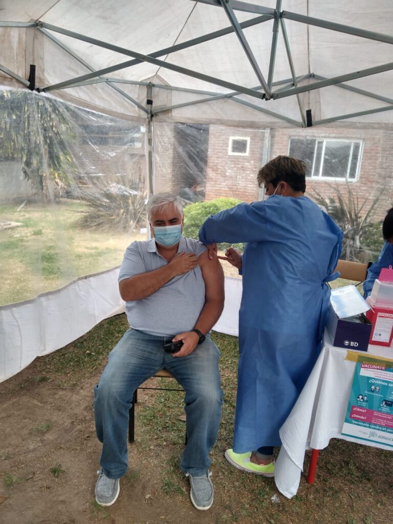 Varios profesionales de la salud, entre ellos el Secretario de Salud Dr. Guillermo Sancho, enfermeras y personal que mantiene contacto estrecho con pacientes, recibieron su dosis en la carpa instalada para tal fin, totalizando 105 aplicaciones.