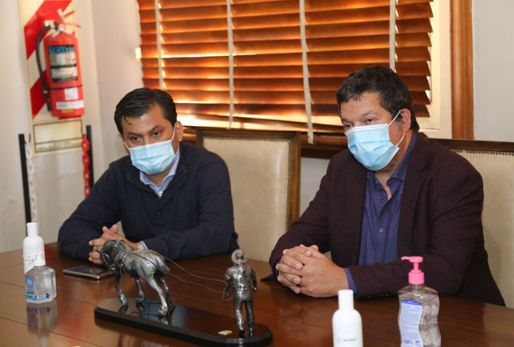 El propietario de la empresa TECNIPISOS S.A. Antonio Pécora participó de la firma del contrato en un acto en el que además del Intendente Salazar estuvieron los secretarios de Coordinación Ramón Salazar, de Economía Fabián Rodríguez y de Obras Públicas, Javier Silva.