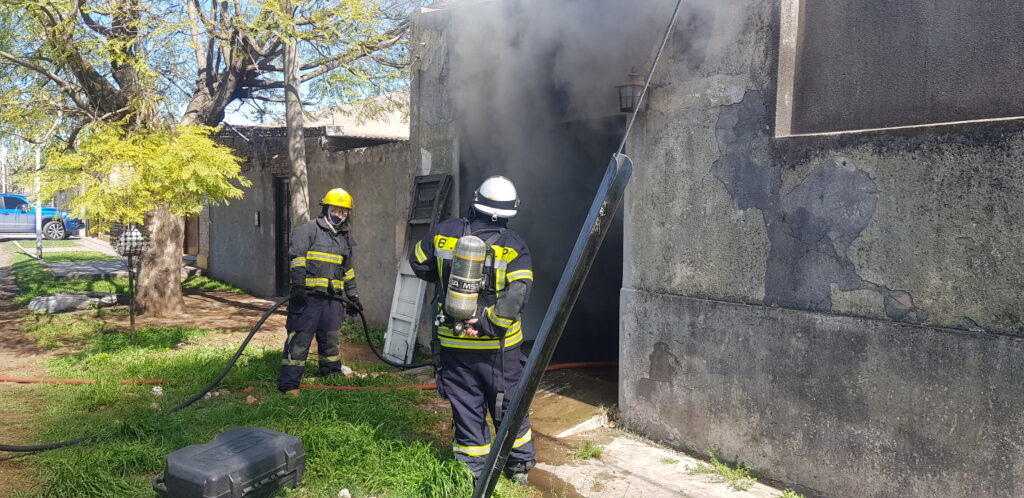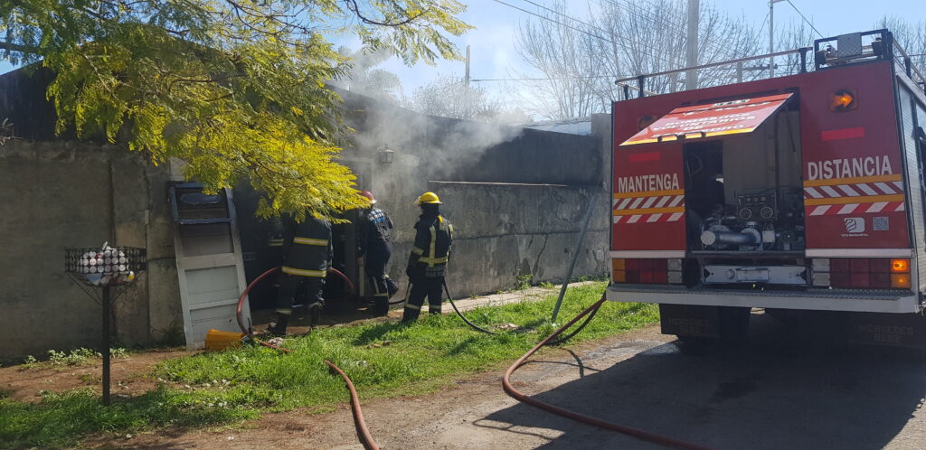En la mañana de este martes bomberos tuvo que intervenir en un incendio importante donde las pérdidas de un automóvil fueron parciales y además provocó daños en la vivienda donde se encontraba estacionado.